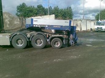 | Keywords: Adskilt blokvogn 2.jpg Forenden af en blokvogn der er skilt ad for læsning af maskine Billedet viser bagenden af sættevognstrækkeren med ekstra aksel samt svanehalsen fra blokvognen Front end of a heavy load carrier low loader separated for loading of a machine The picture shows the rear of the tractor unit and the goose neck swan's neck of the semi-trailer own Own photo 2007-07 G®iffen Image Adskilt_blokvogn_1 jpg Tractor units PD by G®iffen | ||||