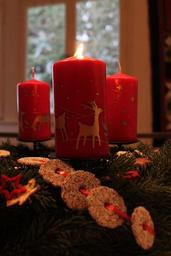 Keywords: advent wreath candle red green light advent decoration burn flame lights arrangement wax romantic wax candle hell heat deco christmas time december cozy christmas quiet