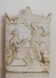 | Keywords: Aegina funerary relief rich style dexiosis 5th century BCE.jpg en Funerary relief of the so called rich style It is a representation of a dexiosis reception The deceased seated to the left holds a bird in her left hand while greeting a standing woman 5th-c BCE Aegina archaeological museum inv 2222 Aegina Greece fr Relief funéraire de style riche C'est une représentation de dexiosis réception La défunte assise à gauche tient un oiseau dans sa main gauche pendant qu'elle salue la femme debout Vè s av J -C Musée archéologique d'Égine n°2222 Égine Grèce 2015-10-27 16 07 41 own Jebulon other versions 37 749626 23 424833 cc-zero QualityImage Ancient Greek funerary steles in Greece 5th-century BC reliefs in Greece 5th-century BC art in Greece Ancient Greek chairs Naiskoi Handshakes in ancient Greek funerary art Ancient Athenian women Sitting women in art Ancient Greek fashion 2222 number Archaeological museum of Aegina Reliefs in Aegina Quality images of Aegina Quality images by Jebulon |