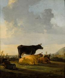 | Keywords: Aelbert Cuyp - Landschap bij avondzon met drie koeien en een liggende herdersjongen.jpg Artwork Creator Aelbert Cuyp en Landscape with three cows and a cowherd between 1635 1691 Oil on canvas size cm 66 9 58 5 Institution Rijksmuseum Twenthe 211098 http //www collectierijksmuseumtwenthe nl/ventura/engine php Cmd see P_site 812 P_self 656 PMax Bladeren PSkip 0 Collectie Rijksmuseum Twenthe object history credit line accession number ERH015000349 PD-old-100 Paintings with cattle by Aelbert Cuyp Young Herdsman with Cows Cattle herders in art 17th-century landscape paintings |