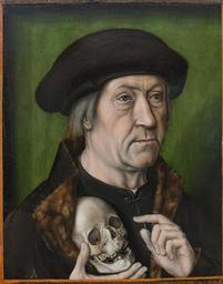 | Keywords: Aelbrecht Bouts - Portrait of a Man Holding a Skull (Brukenthal-Museum).jpg attributed to title Self-portrait / Portrait of a Man Holding a Skull c 1519-1524 oil oak cm 42 6 33 Institution Muzeul Naţional Brukenthal accession number 3183 object history credit line http //www brukenthalmuseum ro/europeana_en/etajII/04 htm langSwitch Muzeul Naţional Brukenthal Sibiu Brukenthal-Museum Hermannstadt https //www google com/culturalinstitute/beta/asset/self-portrait-of-aelbrecht-bouts/ywElGIYwqutSCw Google Art Project works from the Brukenthal National Museum PD-old-100-1923 DEFAULTSORT Bouts Aelbrecht; Self-portrait 1519; Brukenthal National Museum Aelbrecht Bouts Paintings in the Brukenthal National Museum 1520s portrait paintings Portrait paintings in Romania People with skulls in art Pointing left in art Paintings lacking painting technique information 16th-century self-portrait paintings of men 16th-century portrait paintings of men at bust length 1520s religious paintings Pointing right in art 15th-century portrait paintings of men at bust length Males with black headwear in art Portrait paintings of males with skulls Google Art Project works in the Brukenthal National Museum Google Art Project works by Aelbrecht Bouts Male fur clothing in art Fur fashion in 1521 Marten clothing |