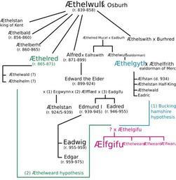 Keywords: Aelfgifu-genealogy.svg en Genealogy of Ælfgifu testatrix and wife of King Eadwig own MHz`as Anglo-Saxon monarchs Family trees of England