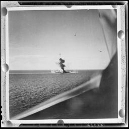 | Keywords: Aerial of US invasion of Engebi Island in Eniwetok atoll. Flares (left) signal fleet to lift bombardment so that... - NARA - 520614.tif is obviously wrong The photo shows a Japanese warship a cruiser under attack A Japanese Mogami-class cruiser under attack by U S Navy aircraft of Carrier Air Group 7 CVG-7 following the Battle of Leyte Gulf 26 October 1944 A Curtiss SB2C-3 Helldiver of Bombing Squadron 7 VB-7 is visible in the upper right of the photograph The cruiser is most probably Kumano which had her bow blown off by a torpedo launched from the destroyer USS Johnston DD-557 during the Battle off Samar on 25 October She was attacked by aircraft of CVG-7 from USS Hancock CV-19 while retreating through the Sibuyan Sea and was struck by three 500 lb 227 kg bombs She survived and sailed to Manila Bay for repairs on her bow and all four boilers On 6 November she was struck by two torpedoes fired from U S submarines and finally sunk by aircraft from USS Ticonderoga CV-14 on 25 November 1944 520614 Local identifier 80-G-47012 Department of Defense Department of the Navy Naval Photographic Center 09/18/1947 - Miller Wayne Photographer 2083745 <br /> Still Picture Records Section Special Media Archives Services Division NWCS-S National Archives at College Park 8601 Adelphi Road College Park MD 20740-6001 1944-10-26 Record group Record Group 80 General Records of the Department of the Navy 1804 - 1983 Record group ARC 409 General Photographic File of the Department of Navy compiled 1943 - 1958 documenting the period 1900 - 1958 Series ARC 520587 File unit File unit ARC Variant control numbers NAIL Control Number NWDNS-80-G-47012 yes Other versions <gallery> File Aerial_of_US_invasion_of_Engebi_Island_in_Eniwetok_atoll _Flares_ left _signal_fleet_to_lift_bombardment_so_that _-_NARA_-_520614 tif tif File Aerial_of_US_invasion_of_Engebi_Island_in_Eniwetok_atoll _Flares_ left _signal_fleet_to_lift_bombardment_so_that _-_NARA_-_520614 jpg jpg File Japanese cruiser under attack 26 October 1944 jpg jpg </gallery> NARA-cooperation PD-USGov Kumano ship 1937 Battle of Leyte Gulf Curtiss SB2C Helldiver Black and white photographs of World War II NARA TIF images with categorized JPGs |
