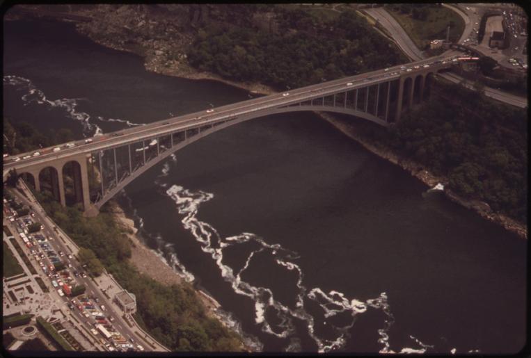 | Keywords: AERIAL VIEW OF NIAGARA RIVER BELOW THE FALLS, SHOWING RAINBOW BRIDGE WHICH JOINS THE AMERICAN AND CANADIAN SIDES.... - NARA - 549469.tif Scope and content General notes 549469 Local identifier 412-DA-6984 Environmental Protection Agency 12/02/1970 - NARA-Author Burns George 1896-1996 Photographer 1340567 <br /> Niagara Falls Niagara New York state United States North and Central America inhabited place 4202458 43 083 -79 05 <br /> Still Picture Records Section Special Media Archives Services Division NWCS-S National Archives at College Park 8601 Adelphi Road College Park MD 20740-6001 05/1973 Record group Record Group 412 Records of the Environmental Protection Agency 1944 - 2006 Record group ARC 708 DOCUMERICA The Environmental Protection Agency's Program to Photographically Document Subjects of Environmental Concern compiled 1972 - 1977 Series ARC 542493 File unit File unit ARC Variant control numbers Agency-Assigned Identifier 117/24/006984<br /> NAIL Control Number NWDNS-412-DA-6984 yes Other versions <gallery> File AERIAL_VIEW_OF_NIAGARA_RIVER_BELOW_THE_FALLS _SHOWING_RAINBOW_BRIDGE_WHICH_JOINS_THE_AMERICAN_AND_CANADIAN_SIDES _-_NARA_-_549469 tif tif File AERIAL_VIEW_OF_NIAGARA_RIVER_BELOW_THE_FALLS _SHOWING_RAINBOW_BRIDGE_WHICH_JOINS_THE_AMERICAN_AND_CANADIAN_SIDES _-_NARA_-_549469 jpg jpg </gallery> NARA-cooperation PD-USGov Rainbow Bridge Niagara Falls 1973 in Ontario 1973 in New York NARA TIF images with categorized JPGs |