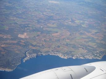 Keywords: aerial view the plane flight land sky airfare clouds landscape skies the height of the the coast continent fields city port sea