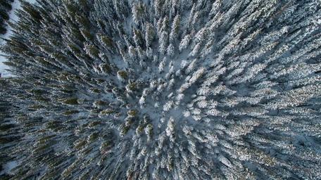 Keywords: aerial view trees forest conifers landscape tundra wilderness snow winter arctic nordic scandinavian nature outdoor perspective remote