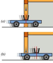 | Keywords: Aether drag analogy.svg en If you visualize a bucket on a train about to enter a tunnel and a drop of water drips from the tunnel entrance into the bucket at the very centre the drop will not hit the centre at the bottom of the bucket The bucket is the tube of a telescope the drop is a photon and the train is the earth If aether is dragged then the droplet would be travelling with the train when it is dropped and would hit the centre of bucket at the bottom Own Inductiveload 2009-03-11 Special relativity |