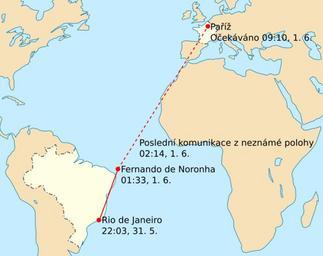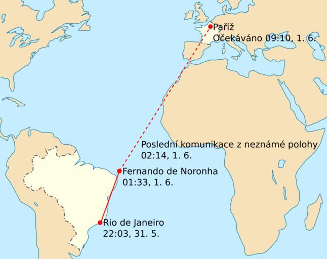 | Keywords: AF 447 path-cs.svg Trasa letu Air France 447 31 5 /1 6 2009 Plná červená čára symbolizuje skutečnou trasu čárkovaná část je plánovaná trasa po posledním radarovém kontaktu s letadlem česky Air-France-Flug 447 Die rote durchgehende Linie zeigt die bereits geflogende Route die gestrichelte den geplanten Flug nach dem Verschwinden vom Radar Tschechisch en Flight path of Air France Flight 447 on 31 May/1 June The solid red line shows actual route the dashed line is the planned route after the last radar contact Czech fr Trajet du vol Air France 447 qui s'est déroulé durant la nuit du 31 mai/1er juin La ligne rouge continue montre le trajet effectivement effectué et la ligne pontillé le reste du plan de vol après le dernier contact radar Tchèque Air France - Voo 447 - feito na madrugada de 31 de maio para 1 de junho A linha vermelha contínua mostra a rota que o avião deveria seguir e a linha tracejada é a rota prevista para depois do ponto onde o radar perdeu contato com o avião Tcheco Own translation of File AF 447 path-en svg translation Petr Kadlec original image User Mysid Jolly Janner 2009-06-07 AF447 2009-05-31 overnight 2009-06-01 flight paths |