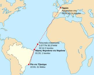 | Keywords: AF 447 path-notext el.svg Air-France-Flug 447 Die rote durchgehende Linie zeigt die bereits geflogende Route die gestrichelte den geplanten Flug nach dem Verschwinden vom Radar en Flight path of Air France Flight 447 on 31 May/1 June The solid red line shows the approximate actual route the dashed line is the planned route after the last radar contact el Η διαδρομή της τήσης 447 της Air France μεταξύ 31 αΐου-1 Ιουνίου Η συμ αγής κόκκινη γραμμή δείχνει ροσεγγιστικά την ραγματική ορεία του αεροσκάφους η διακεκομμένη κόκκινη γραμμή δείχνει την σχεδιασμένη διαδρομή μετά την τελευταία ε αφή fr Trajet du vol Air France 447 qui s'est déroulé durant la nuit du 31 mai/1er juin La ligne rouge continue montre le trajet effectivement effectué et la ligne pontillé le reste du plan de vol après le dernier contact radar Air France - Voo 447 - feito na madrugada de 31 de maio para 1 de junho A linha vermelha contínua mostra a rota que o avião deveria seguir e a linha tracejada é a rota prevista para depois do ponto onde o radar perdeu contato com o avião own original version Mysid this version Ferengi original version 2009-06-02 this version 2009-06-03 AF 447 path-notext svg original version AF 447 path-pt png portuguese AF447 2009-05-31 overnight 2009-06-01 flight paths |