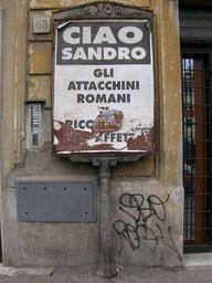 | Keywords: Affissione scritta dagli attacchini romani.JPG Uso anomalo di spazio pubblicitario affissione di avviso di lutto e ringraziamento Rarissimo caso in cui gli attacchini anziché fare solo il loro lavoro dietro le quinte hanno usato lo spazio delle affissioni per lasciare un loro messaggio in questo caso un saluto affettuoso ad un loro collega improvvisamente scomparso a maggio 2009 Sandro Francavilla attacchino storico di Roma Per la storia si veda http //www lastampa it/_web/cmstp/tmplRubriche/editoriali/gEditoriali asp ID_blog 25 ID_articolo 5976 ID_sezione 29 sezione qui own 2009-07-21 Patafisik PD Outdoor advertising Advertisements in Rome 2009 advertisements in Italy Posters of Italy 2000s posters SPQR Poster displays People of Rome Bulletin boards in Italy Billboards |