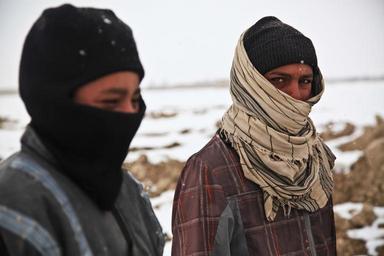 Keywords: afghani people man cold winter war icy snowflakes hooded