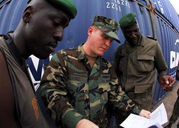 | Keywords: Africa Partnership Station Returns to Gabon DVIDS79111.jpg en Chief John Kines chief gunner's mate checks aboard new Africa Partnership Station APS students from the Gabonese military at Port Gentile Gabon Gabonese students arrived onboard the amphibious dock landing ship USS Fort McHenry LSD 43 for various APS training topics such as pier and waterside sentry specialized medical training and maritime law Part of the U S Navy's Global Fleet Station APS provides a platform with the capacity and persistent presence to support sustained focused training and collaboration on a regional scale to maritime partners in West and Central Africa Commander Task Force 365 and training teams from various U S and European military commands as well as governmental and non-governmental organizations are embarked on board Fort McHenry to enhance cooperative partnerships U S Navy photo/Petty Officer 2nd Class R J Stratchko 2008-03-03 Petty Officer 2nd Class RJ Stratchko https //www dvidshub net/image/79111 080303-N-+++++-011 2008-03-03 16 38 PORT GENTILE GA PD-USGov-Military-Navy USS Fort McHenry LSD-43 Images from DoD uploaded by Fæ |