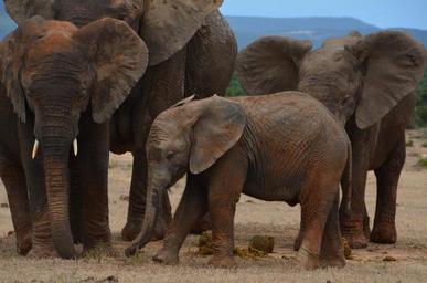 Keywords: africa safari elephant wild animal pachyderm african bush elephant flock young animals baby elephant big five wilderness wildlife photography
