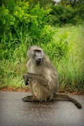 Keywords: africa south africa wild life baboon resting sitting baboon animal wild animal nature kruger national park road savanna
