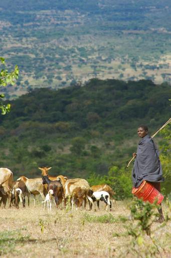 Keywords: africa tanzania landscape green wide shepherd goats animals