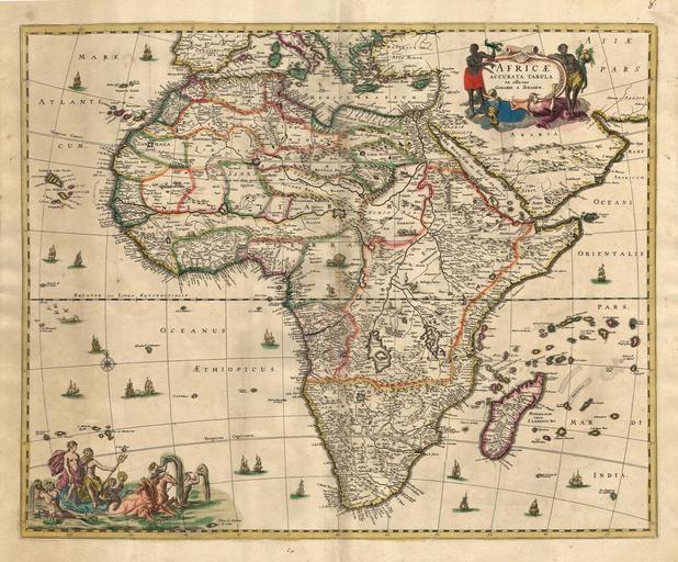 | Keywords: Afrika Map 1689.JPG ِAfrica map - Produced in Amsterdam<br> FIRST edition 1689 <br> Produced using copper engraving scanned copy This edition 1689 van Schagen Public Domain Assessments 1 PD-old 1680s maps of Africa 1689 1689 maps 1689 engravings |