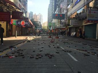 | Keywords: After Mong Kok civil unrest Road 2.jpg zh 旺角騷亂後,遺下大量磚頭的路 http //www voachinese com/media/photogallery/hongkong-protests-20160209/3182900 html 美 之音記 譚嘉琪 2016-02-09 PD-USGov-VOA 22 18 59 78 N 114 10 16 72 E alt 18 432678_source exif_heading 81 08042 2016 Mong Kok civil unrest |