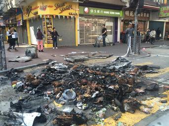 | Keywords: After Mong Kok civil unrest Road ashes.jpg zh 旺角騷亂後,示威 燃燒 物後 街道上留下的殘骸 http //www voachinese com/media/photogallery/hongkong-protests-20160209/3182900 html 美 之音記 譚嘉琪 2016-02-09 PD-USGov-VOA 22 19 0 74 N 114 10 17 98 E alt 27 219178_source exif_heading 205 87218 2016 Mong Kok civil unrest |