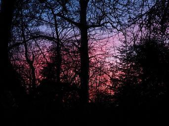 Keywords: afterglow evening abendstimmung sunset evening sky sky red reddish purple pink coloring sky color trees aesthetic blue bluish violet