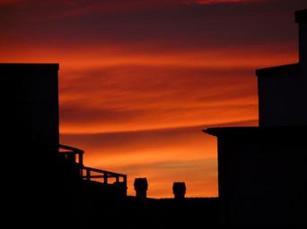 Keywords: afterglow sunset sky clouds fire glow burn home architecture silhouette building