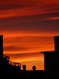 Keywords: afterglow sunset sky clouds fire glow burn home architecture silhouette building