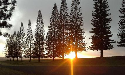 Keywords: afternoon sun pine sunset evening trees sunshine light ray