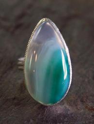 Keywords: agate teardrop clear green teal crystal silver metal jewelry jewel stone gem gemstone huge cabochon cab ring setting sterling antique