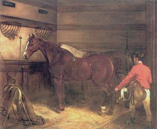 | Keywords: Agathon.jpg Horse Agathon at the stable of Glienicke castle Das Pferd Agathon im Stall des Schlosses Glienicke Verwaltung der Staatlichen Schlösser und Gärten Berlin Schloss Glienicke S 291 1850 creator Franz Krüger PD-Old PD-old-100 Franz Krüger 19th-century paintings of horses Portrait paintings of horses Horse stables in art Straw in art Remise Glienicke |