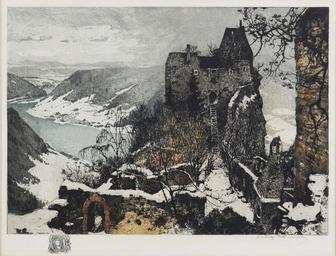 Keywords: Aggstein Castle Etching and aquatint in colors art-call Artistically