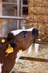 Keywords: agriculture animal calf cattle cow dairy eat eating farm farming feeding hay head livestock mammal rural straw young