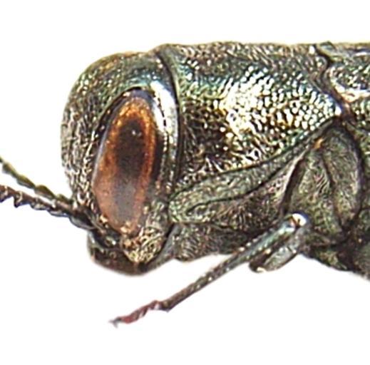 | Keywords: Agrilus biguttatus detail.JPG Kopf und Prothorax doppelte Seitenrandkante des Halsschildes das Feld zwischen der eigentlichen und der falschen Seitenrandkante ist durch die Belichtung etwas heller als die umgebenden Gebiete Photo made by myself 2007-10-10 Siga public domain Agrilus biguttatus Coleoptera heads |