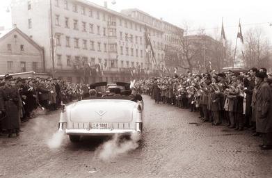 | Keywords: Ahmed Sékou Touré na obisku v Ljubljani 1961 (2).jpg Ahmed Sékou Touré na obisku v Ljubljani 272109 1961-01-08 creator Danilo Škofič PD-Slovenia 1961 in Slovenia 20th-century black and white photographs of Ljubljana State visits in Ljubljana Ahmed Sékou Touré Historical images of Liberation Front Square Ljubljana Historical images of automobiles in the Center District Ljubljana Photographs by Danilo Škofič Cobblestone streets in Ljubljana License plates of Yugoslavia Cadillac Series 62 Convertible 1954 Bilateral relations of Guinea Bilateral relations of Yugoslavia |