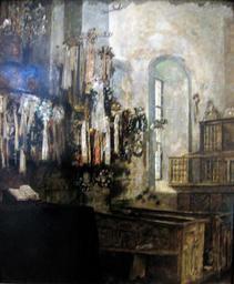 | Keywords: Ahnert Wilhelmshausen church 1899.jpg Arthur Ahnert 1865-1913 Interior of Wilhelmshausen church oil on canvas 1898/1899 self-made Museum für Sepulkralkultur Kassel 2008-01 McLeod Reproduction of a painting that is in the public domain because of its age PD-Art Museum für Sepulkralkultur Kassel Paintings of churches in Germany Paintings from Germany Funeral crowns Churches in Fuldatal Paintings of church interiors | ||||