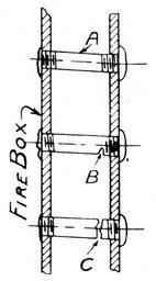 | Keywords: Ahrons (1921) Steam Locomotive Construction and Maintenance Fig49.png Cracked and Broken Stays with Heads Wasted Away Inside Firebox Original Steam Locomotive Construction and Maintenance p 123 Fig 49 <br>Scan Internet Archive “ http //www archive org/details/steamlocomotivec00ahrorich 1921 E L Ahrons PD-old-auto-1923 1925 PD-old Scans from Ahrons 1921 Steam Locomotive Construction and Maintenance Steam locomotive boiler fireboxes Boiler stays | ||||