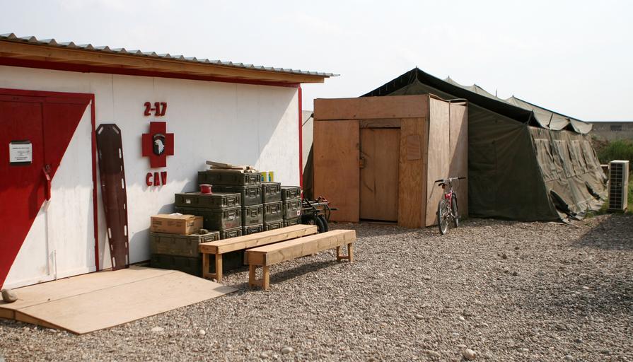 | Keywords: Aid Station DVIDS20684.jpg en A look at the medical aid station built by Soldiers of E Troop 2nd Squadron 17th Cavalry Regiment at Forward Operating Base Warrior in Kirkuk Iraq The Soldiers even installed running water in the building 2006-05-17 Staff Sgt Ryan Matson https //www dvidshub net/image/20684 20684 2006-05-17 11 34 KIRKUK IQ PD-USGov Forward Operating Base Warrior Images from DoD uploaded by Fæ | ||||