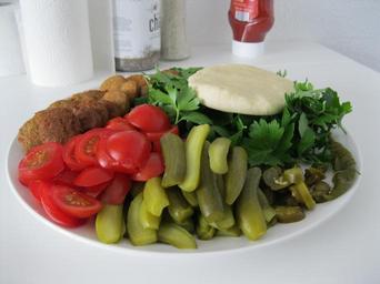 Keywords: Ailin11VeganFalafel.JPG en Vegan dish with falafel own AilinParsa Cc-zero Vegan food Vegan meals