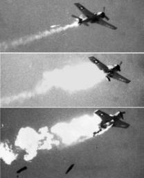 | Keywords: AIM-9B hits F6F-5K over China Lake 1957.jpeg An AAM-N-7 later AIM-9B Sidewinder air-to-air missile fired from an Grumman F9F-8 Cougar hits an Grumman F6F-5K Hellcat drone over Naval Ordnance Test Station NOTS China Lake California USA 19 August 1957 Combination of http //collections naval aviation museum/emuwebdoncoms/pages/doncoms/Query php U S Navy National Museum of Naval Aviation photos No http //collections naval aviation museum/emuwebdoncoms/pages/doncoms/Display php irn 26312 QueryPage 2Femuwebdoncoms 2Fpages 2Fdoncoms 2FQuery php 1996 488 022 007 http //collections naval aviation museum/emuwebdoncoms/pages/doncoms/Display php irn 26313 QueryPage 2Femuwebdoncoms 2Fpages 2Fdoncoms 2FQuery php 1996 488 022 008 and http //collections naval aviation museum/emuwebdoncoms/pages/doncoms/Display php irn 26314 QueryPage 2Femuwebdoncoms 2Fpages 2Fdoncoms 2FQuery php 1996 488 022 009 1957-08-19 U S Navy PD-USGov-Military-Navy AIM-9 Sidewinder F6F Hellcat target drones Naval Air Weapons Station China Lake |