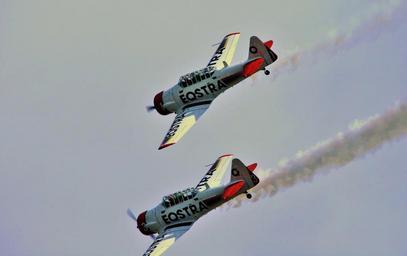 Keywords: air show aircraft formation aerobatic manoeuvres american t-6 harvards smoke white trails