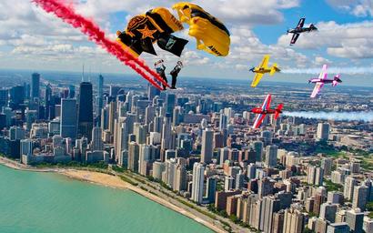 Keywords: air show parachuting smoke parachutist planes jumpers skydiving military aerobatics formation