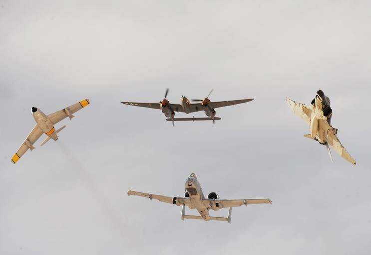 Keywords: air show planes military p-51 mustang f-86 sabre f-4 phantom a-10 thunderbolt perform aerial demonstrations usa flying flights prop jet breaking aircraft airplanes