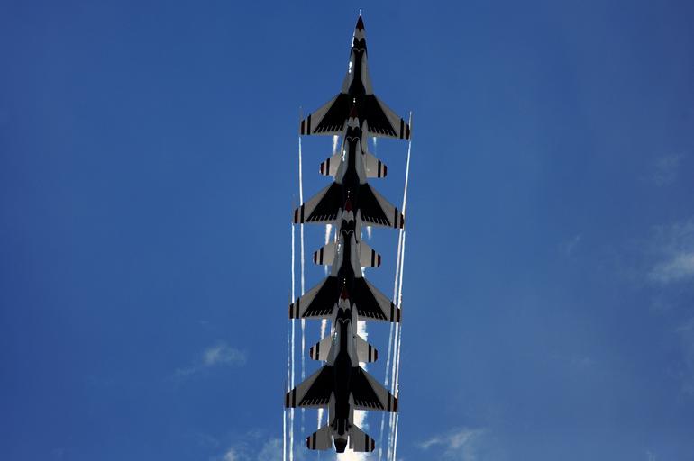 Keywords: air show thunderbirds formation military us air force aircraft jets plane fighter airplanes aerobatics group performance team teamwork skill