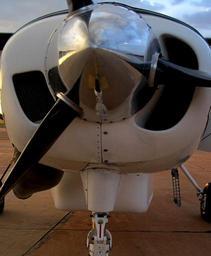 Keywords: aircraft airplane fixed wing white propeller metal spinner shiny metal