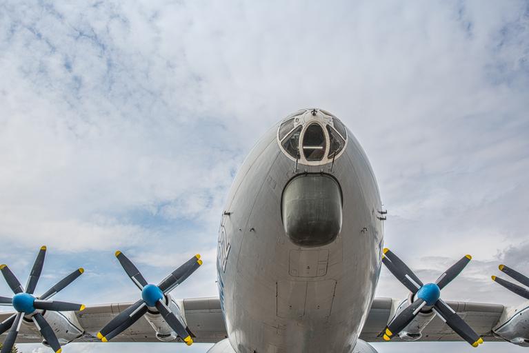 Keywords: aircraft cargo aircraft prompellerflugzeug antonov technik museum speyer aviation wing nose sky clouds