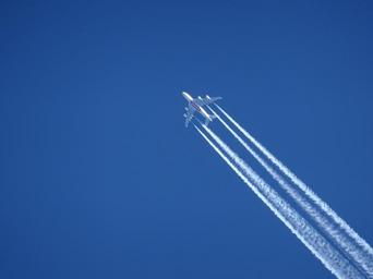 Keywords: aircraft contrail sky blue emirates airline clear air aviation passenger machine flight engines travel wing aircraft wing fly partly cloudy