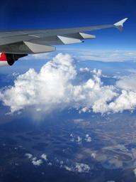 Keywords: aircraft wing clouds blue qantas fly sky turbine flyer outlook travel aerial view window