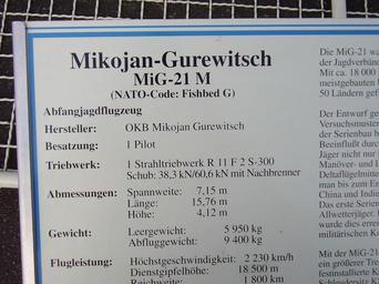 Keywords: Airforce Museum Berlin-Gatow 262.JPG Luftwaffenmuseum der Bundeswehr; Airforce Museum of the Bundeswehr; Berlin-Gatow MiG-21M Own 2007-08 RosarioVanTulpe Mikoyan-Gurevich MiG-21 at the Luftwaffenmuseum Berlin-Gatow