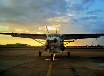Keywords: airplane propeller sunset sun setting tarmac glow orange aircraft
