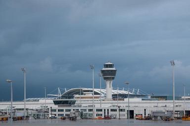 Keywords: airport international munich architecture building transport airlines control tower tower air monitoring atc unit air traffic control light poles