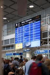 Keywords: airport international munich architecture building transport airlines switch travel departure departures board overview travellers human