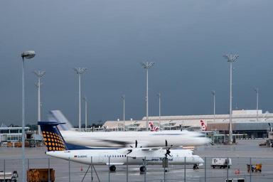 Keywords: airport international munich architecture building transport airlines landing arrival tarmac motion blur